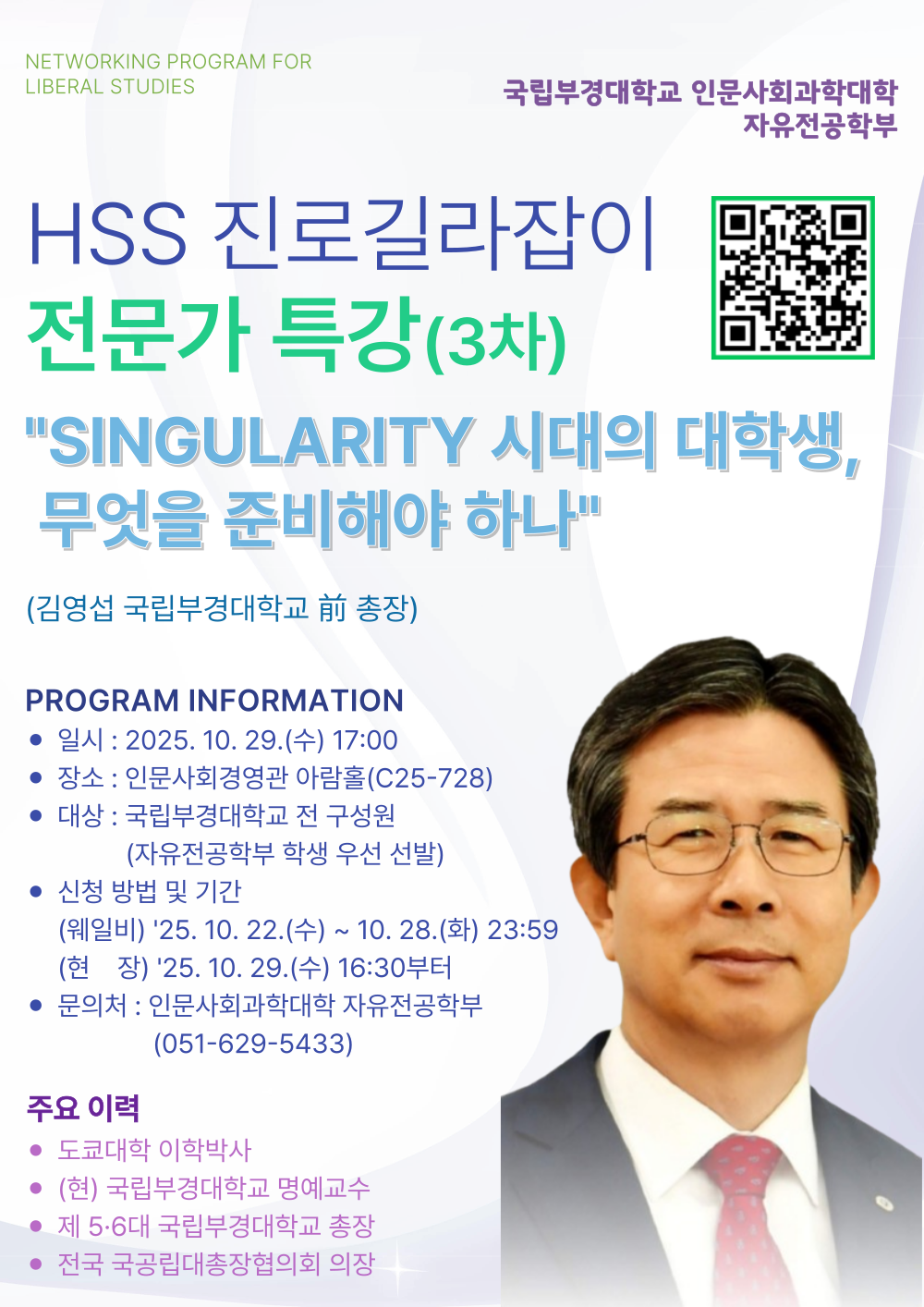 인문사회과학대학 자유전공학부 - HSS 진로길라잡이 전문가 특강(3차) 개최 안내